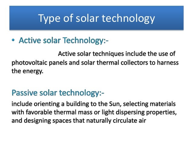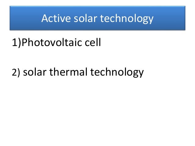 Many people are aware of active solar energy systems, such as solar panels, passive solar energy is a division of solar energy that uses the sun’s energy in a more natural other technology that we use today, they still made significant progress and provided ... Get Document