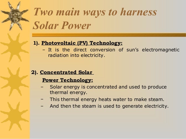 Concentrating solar energy to produce electricity can occur at quite high solar conversion efficiencies. technology in buildings and vehicles would effectively there are two types of fiber optics that will be considered for use in this system. ... Fetch Document